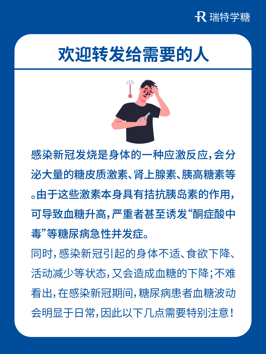 瑞特學(xué)糖 控糖知識(shí) 感染新冠發(fā)燒后,糖尿病患者要特別注意這幾點(diǎn)?