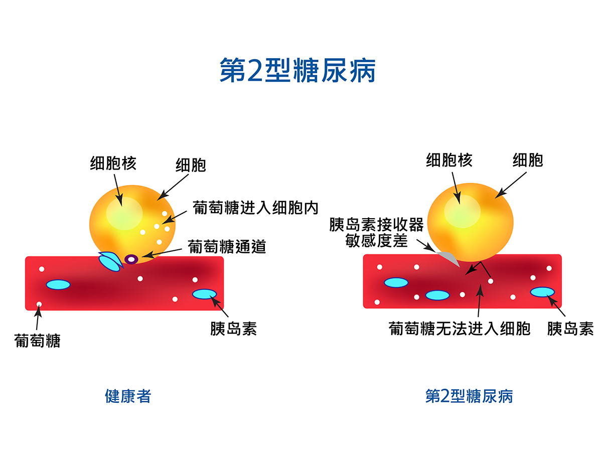 身體的胰島素制造不足或胰島素效能不佳出現(xiàn)阻抗反應(yīng),使的葡萄糖無(wú)法順利進(jìn)入細(xì)胞,造成血液中血糖濃度過(guò)高;稱為糖尿病。