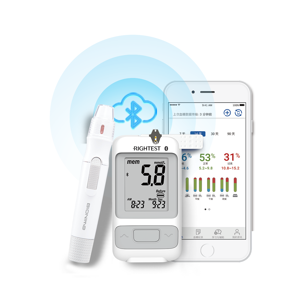了解自己攝入多少食物總量,血糖才穩(wěn)定(餐后2小時(shí)血糖:正常值4.4~7.8mmol/L),血糖儀測(cè)血糖是最直接的方法。瑞特GM700SB智享血糖儀,操作簡(jiǎn)便,5秒出值,測(cè)糖準(zhǔn)確,是家庭必備的血糖健康管理助手。