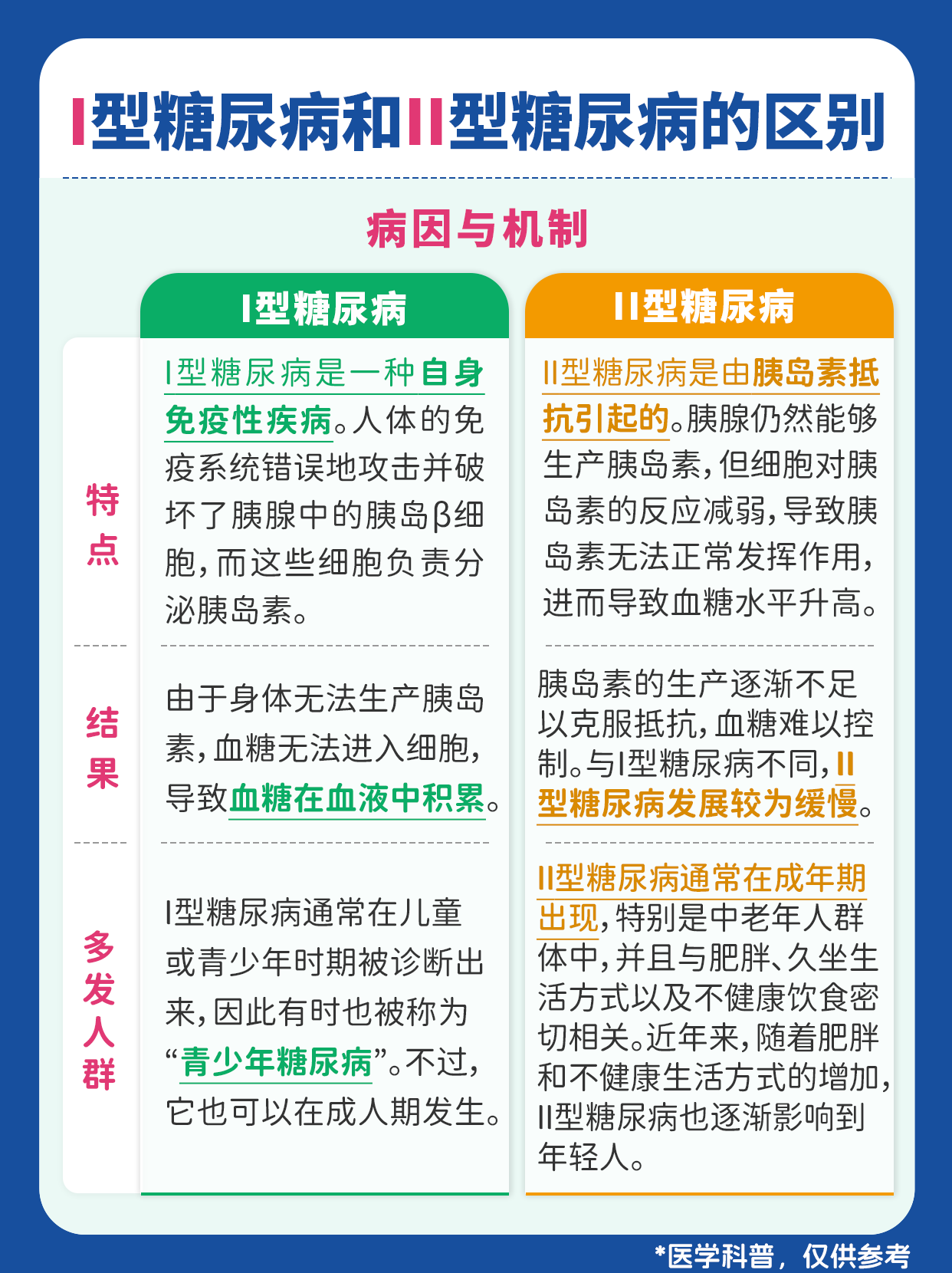 Ⅰ型糖尿病和Ⅱ型糖尿病的區(qū)別