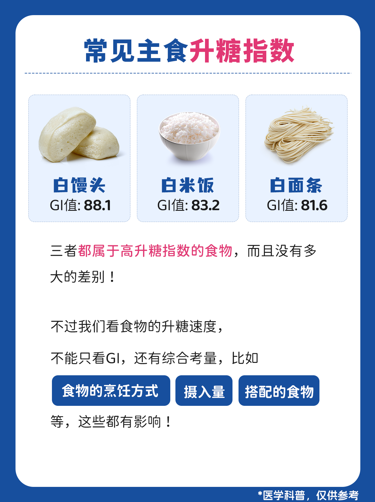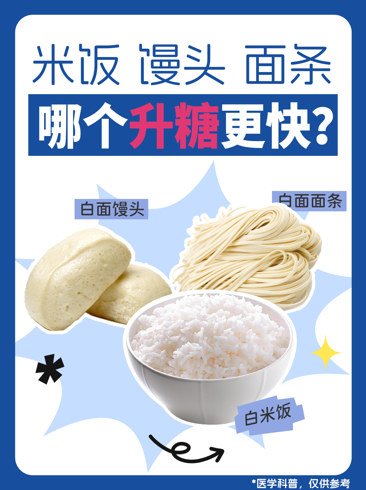 瑞特學(xué)糖 控糖知識 面條vs米飯vs饅頭 哪個升糖指數(shù)更高?
