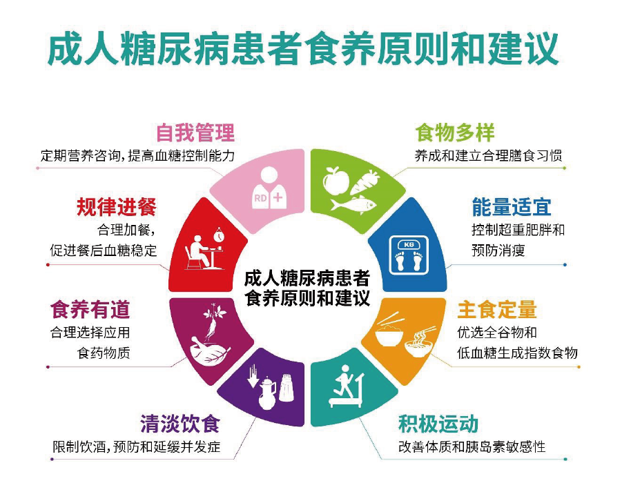 膳食管理和治療是糖尿病患者血糖控制的核心,應(yīng)遵循平衡膳食的原則,以食物多樣性實現(xiàn)合理膳食均衡營養(yǎng)的基礎(chǔ),調(diào)整優(yōu)化食物種類和重量,滿足自身健康需要。