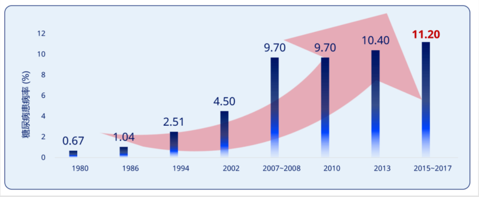 根據(jù)最新的流調(diào)數(shù)據(jù),依WHO診斷標(biāo)準(zhǔn),我國(guó)2型糖尿病患病率已經(jīng)上升至11.2%,整體糖尿病人群的血糖控制達(dá)標(biāo)率尚不足50%,全國(guó)約有適宜開(kāi)展分級(jí)診療基層首診的2型糖尿病患者超1億人。