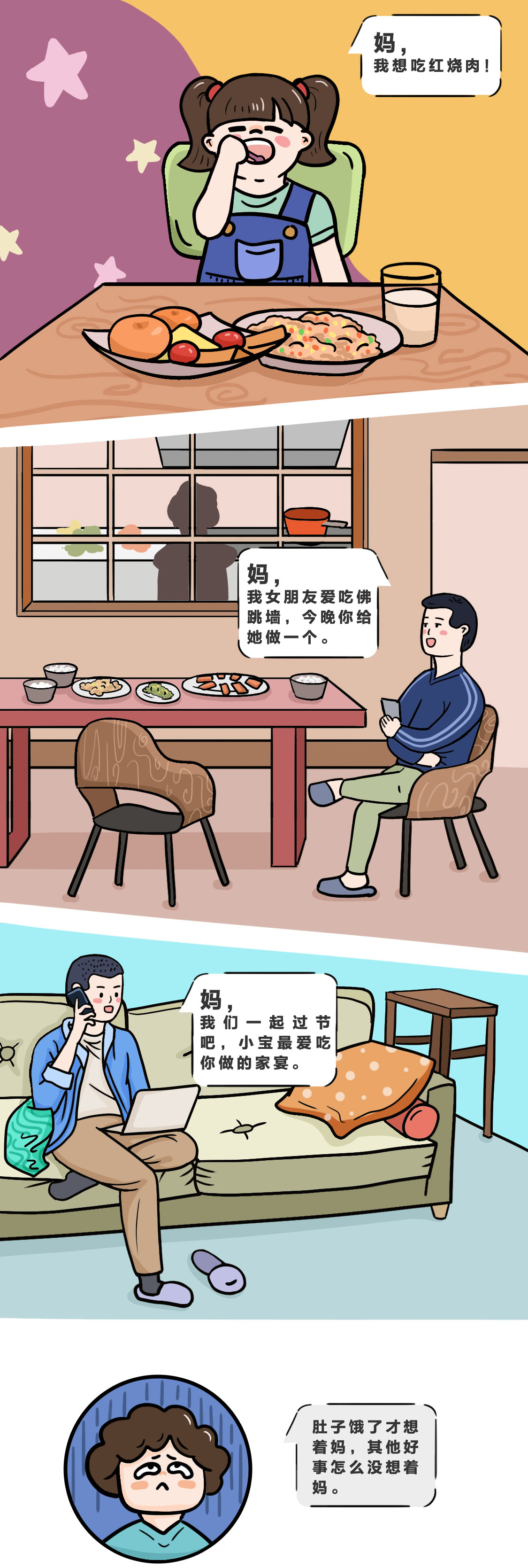 盡管嘴上嗔怪,但會(huì)盡力滿足。媽媽是一種神奇的存在,有她,什么事都可以托付。